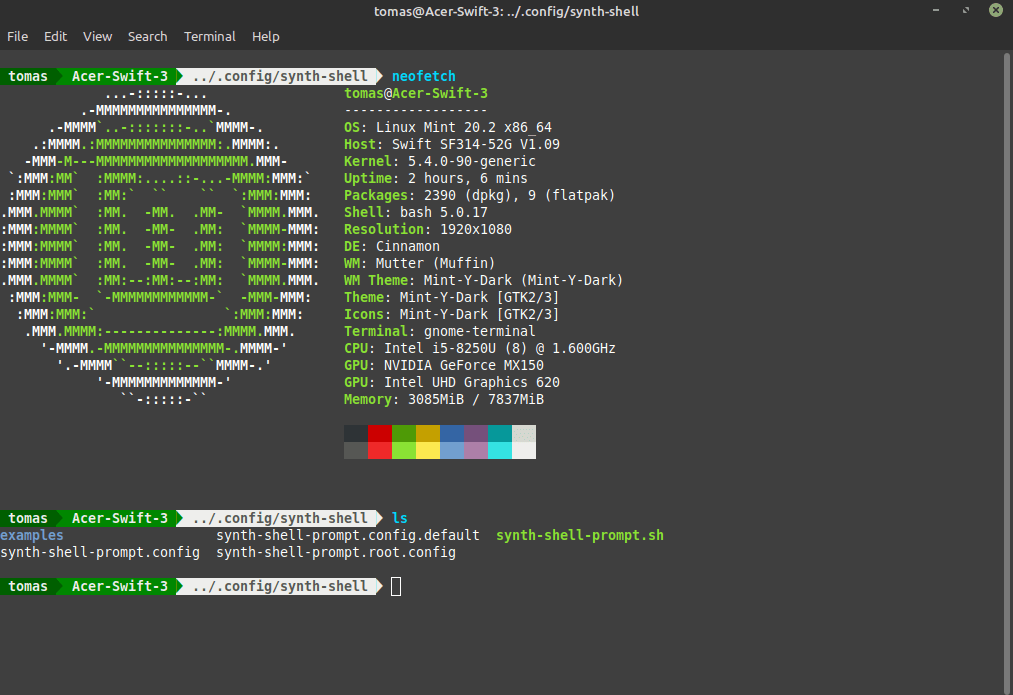 custom colored synth shell terminal rlinuxmint