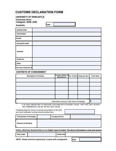 fillable customs declaration form usa printable forms