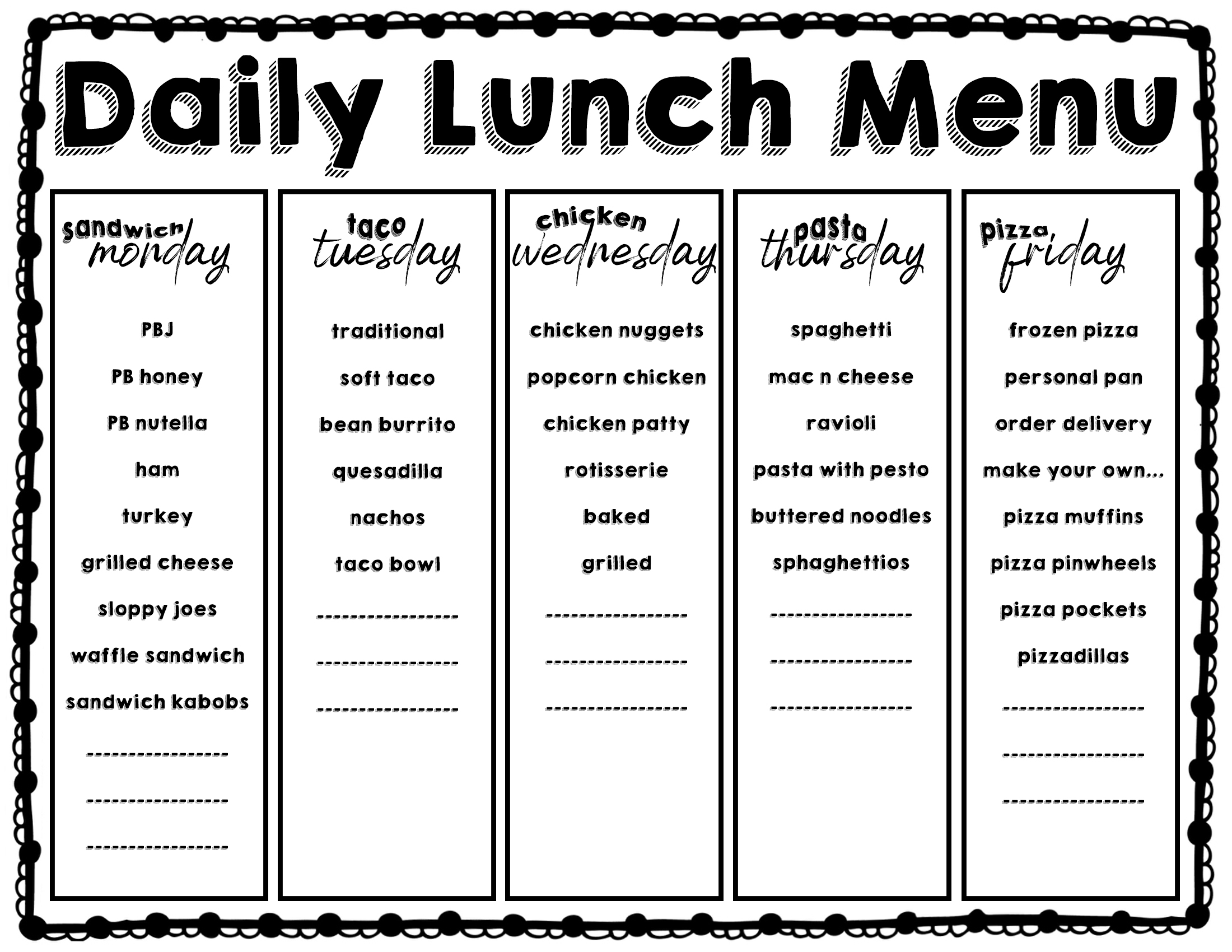 Berbagai Contoh Daily Menu