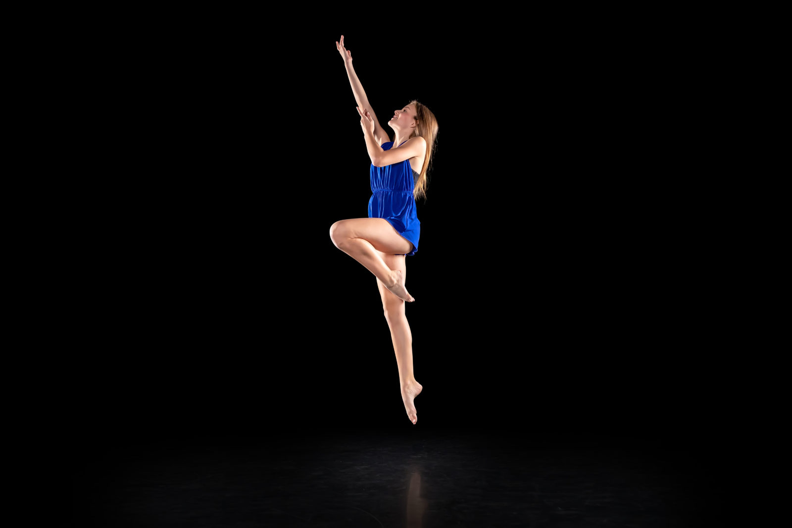 side view energetic female dance performer posture full body length