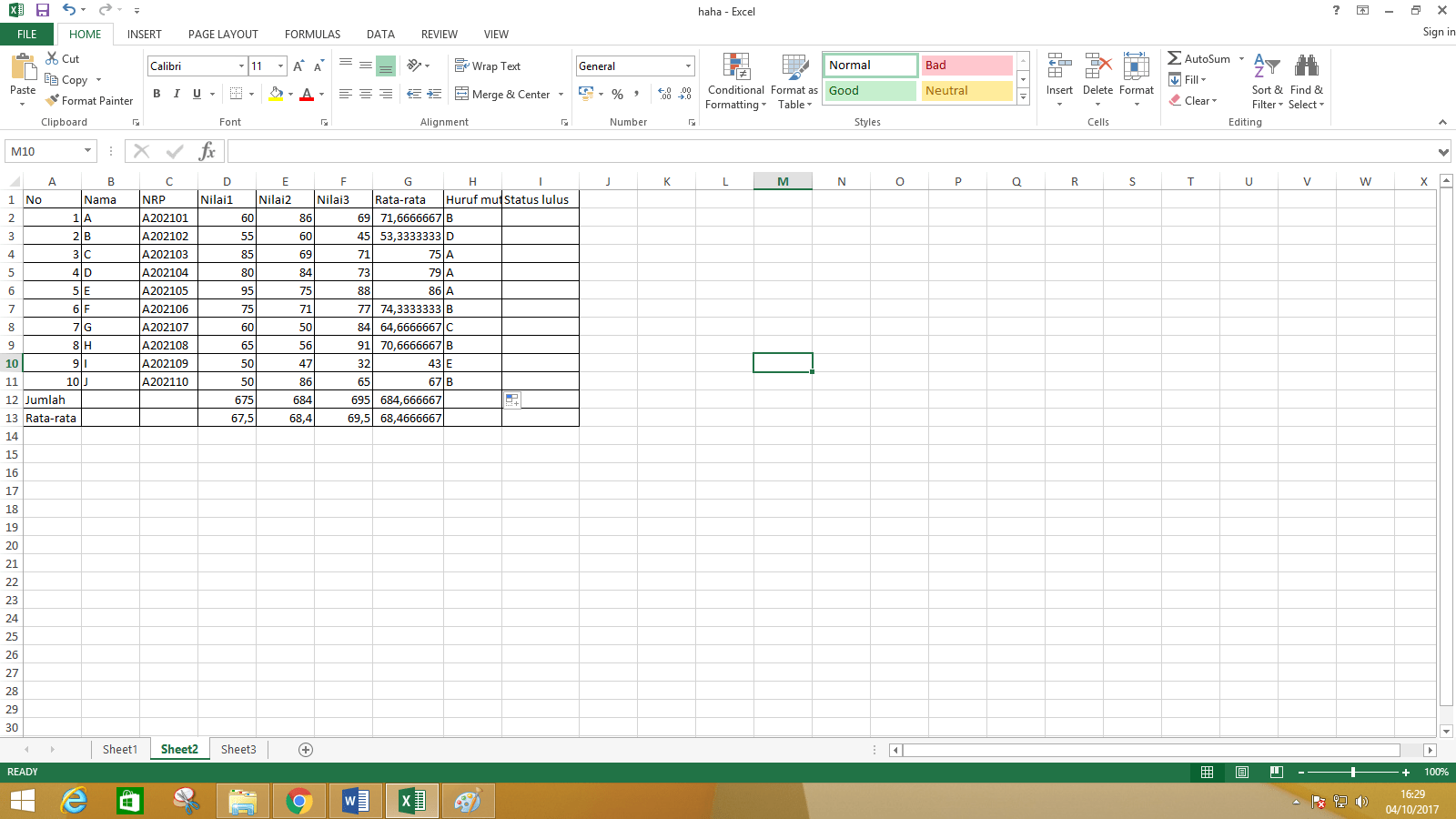 masukkan data excel word pelajaran teknologi kehidupan