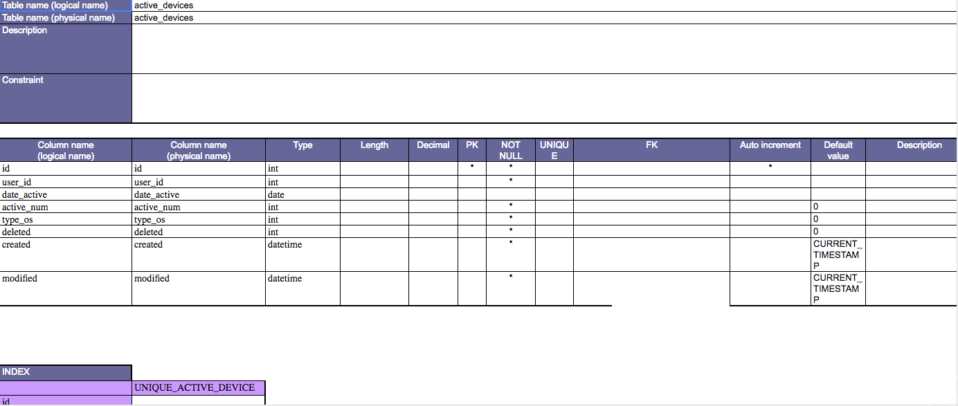 Berbagai Contoh Database Table Definition