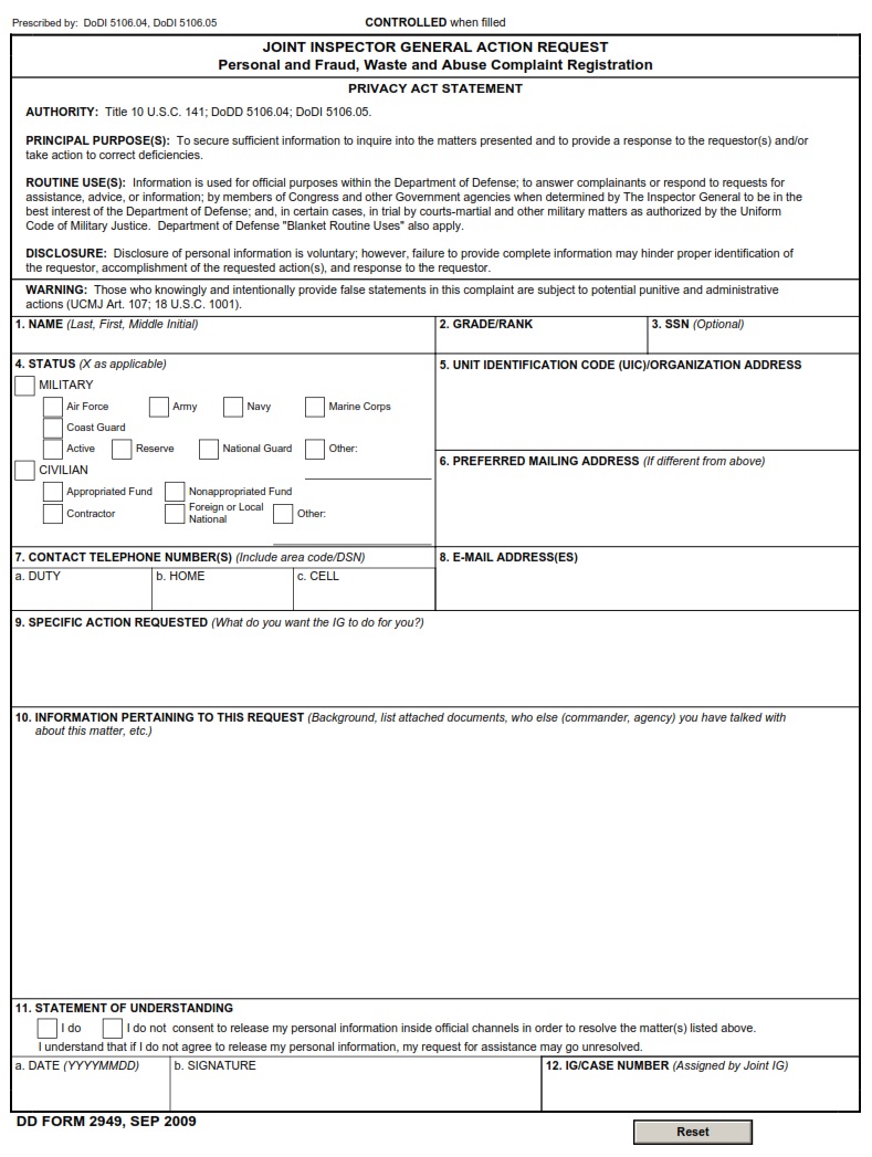 dd form joint inspector general action request dd forms