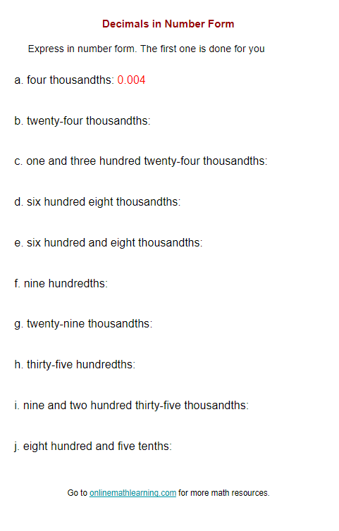 Berbagai Contoh Decimal Form