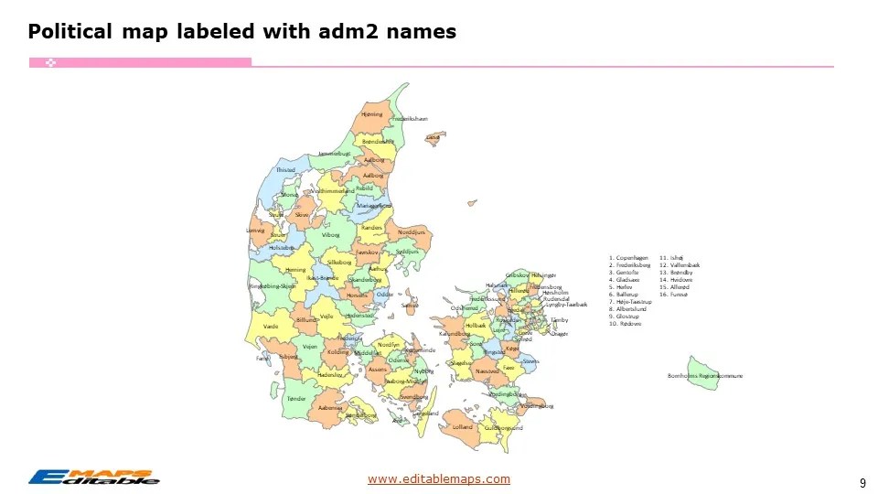 denmark map regions municipalities editable powerpoint maps