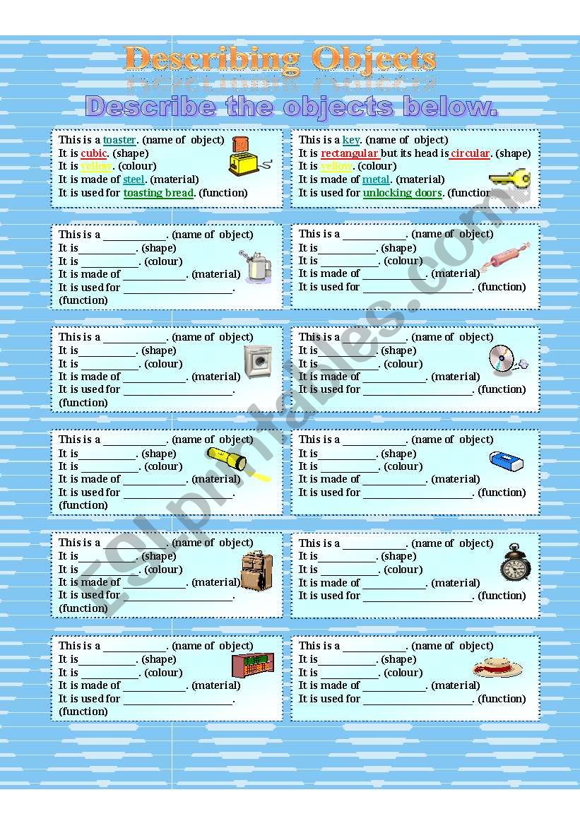 Jika kamu sedang mencari Describing Objects, maka anda berada di halaman yang tepat. Kami menyediakan aneka Describing Objects yang bisa anda pesan online. Silakan hubungi kami via +6282245078486, jangan lupa sertakan juka gambar yang diinginkan.
