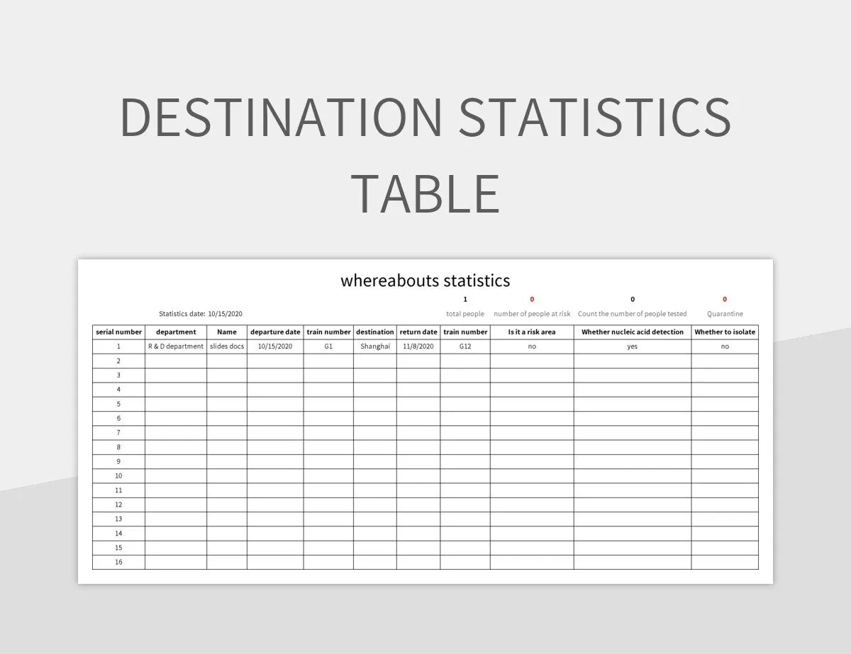 destination statistics table excel template google sheets file