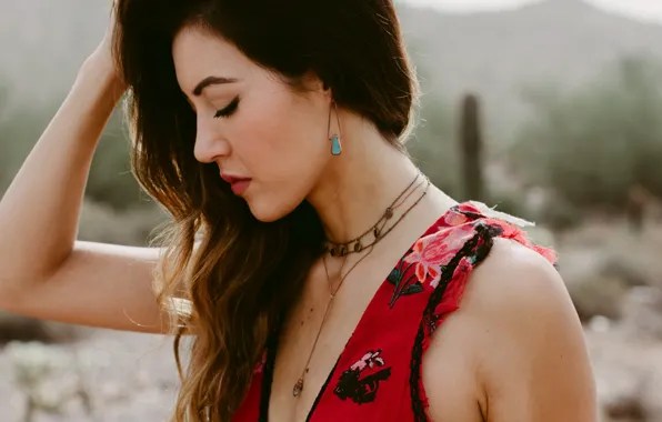 wallpaper girl trees face hair bonsai dress red section
