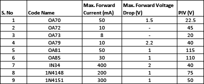 Berbagai Contoh Diode Table
