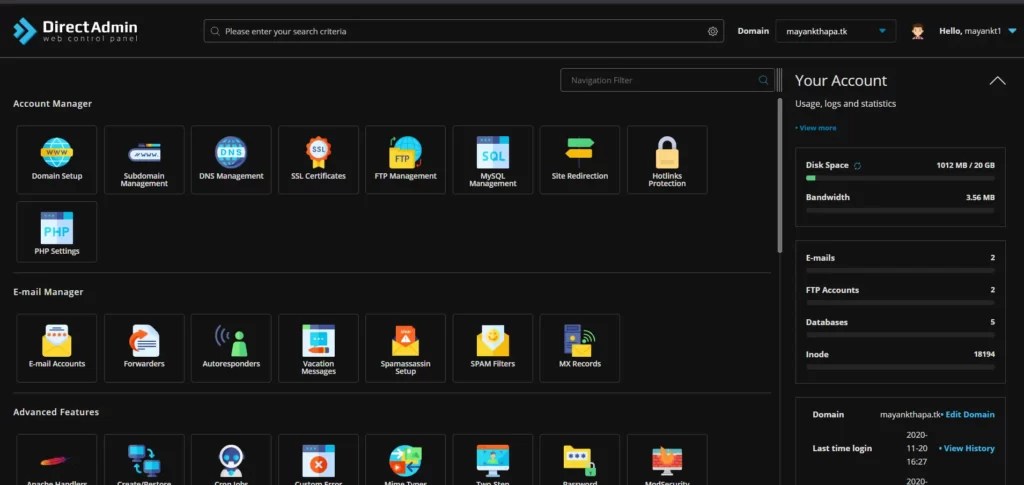 Berbagai Contoh Directadmin Control Panel