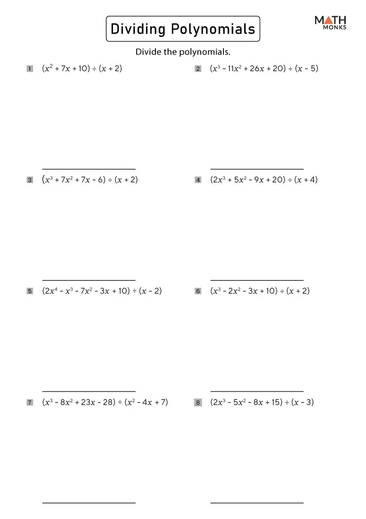 multiplying dividing polynomials worksheet worksheets printable