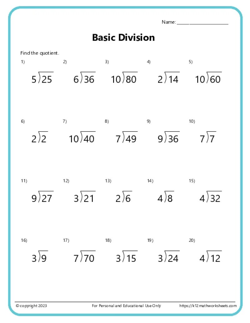 math division worksheets practice printable division exercises