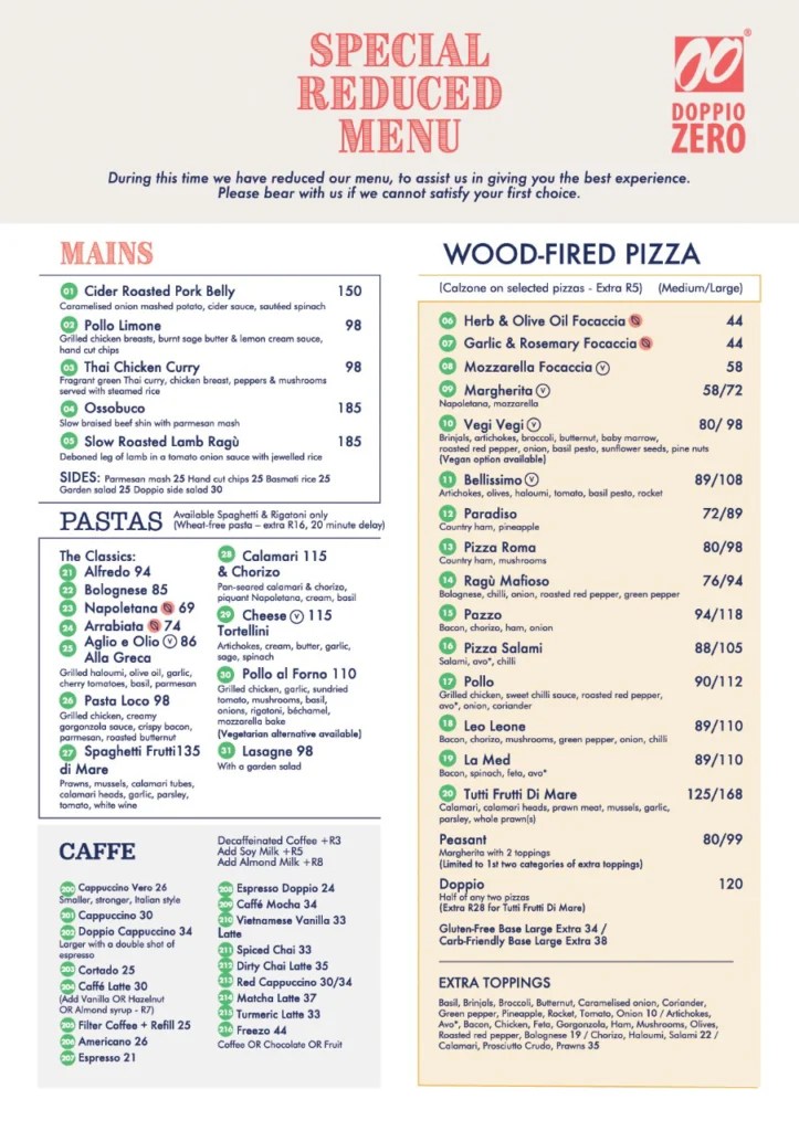 Tidak hanya Doppio Zero, anda juga bisa melihat gambar lain seperti Breakfast Menu, Sandton City, Pizza Menu, Logo png, Restaurant Menu, Bone Marrow, Mountain View, Concord CA, Staff Uniform, Bel Air Menu, Roast Chicken, South Downs, New Market Mall, Campbell CA, Kempton Park, New Market Alberton, Vegan Menu, Cocktail Menu, Food Menu, Woodmead, Potchefstroom, Rosebank, Bassonia, and Chips.