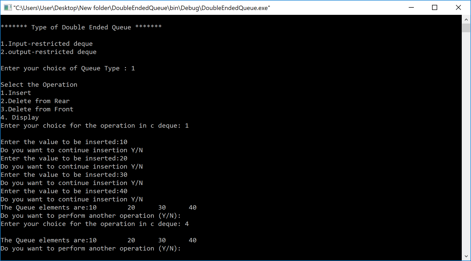 data structure write program implement double ended