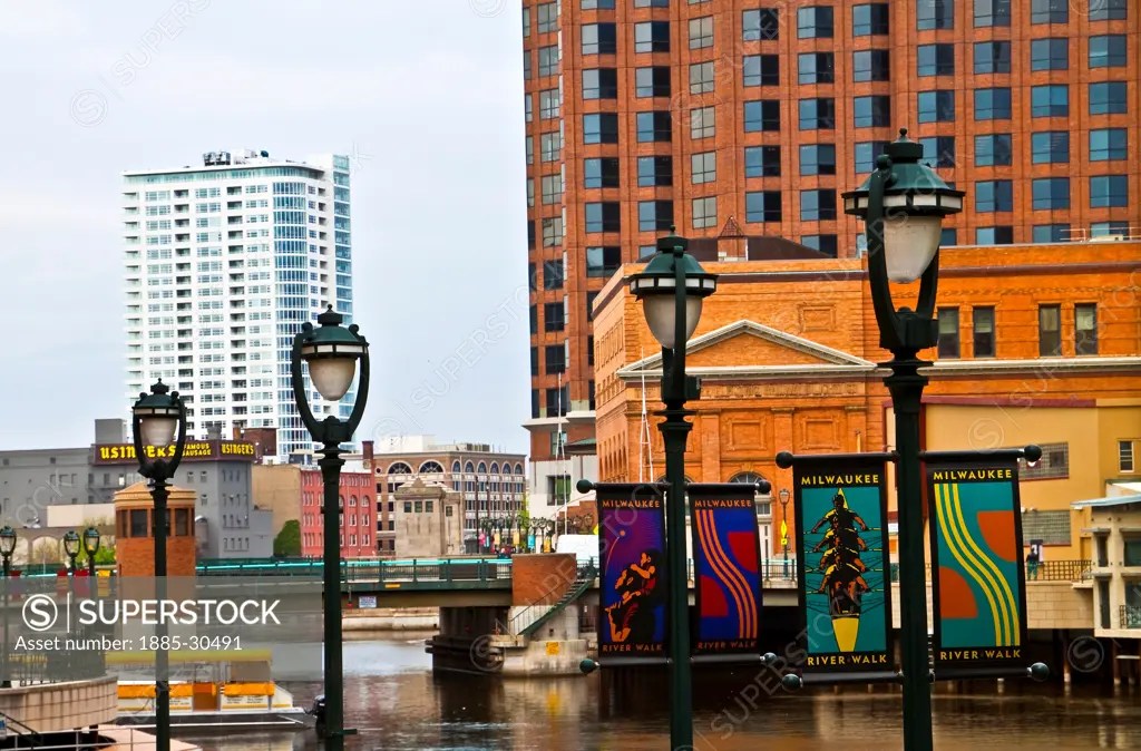 milwaukee riverwalk downtown milwaukee wisconsin usa superstock