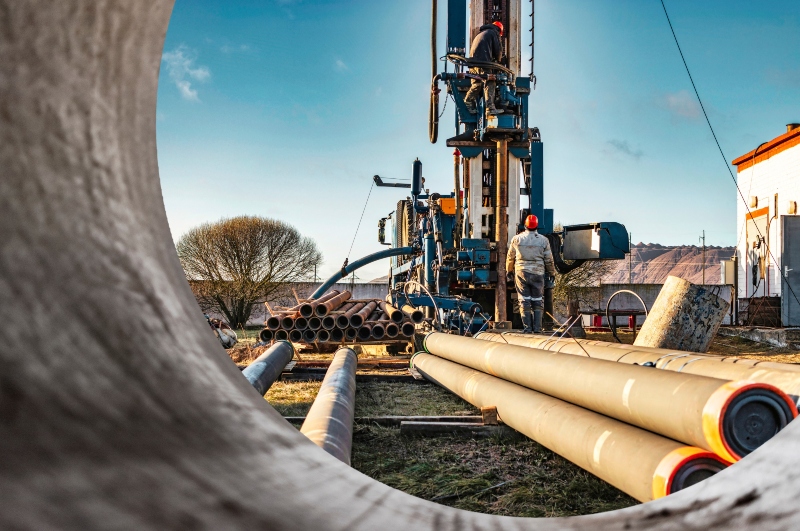 oil gas industry worker operates oil rig drill pipes oil