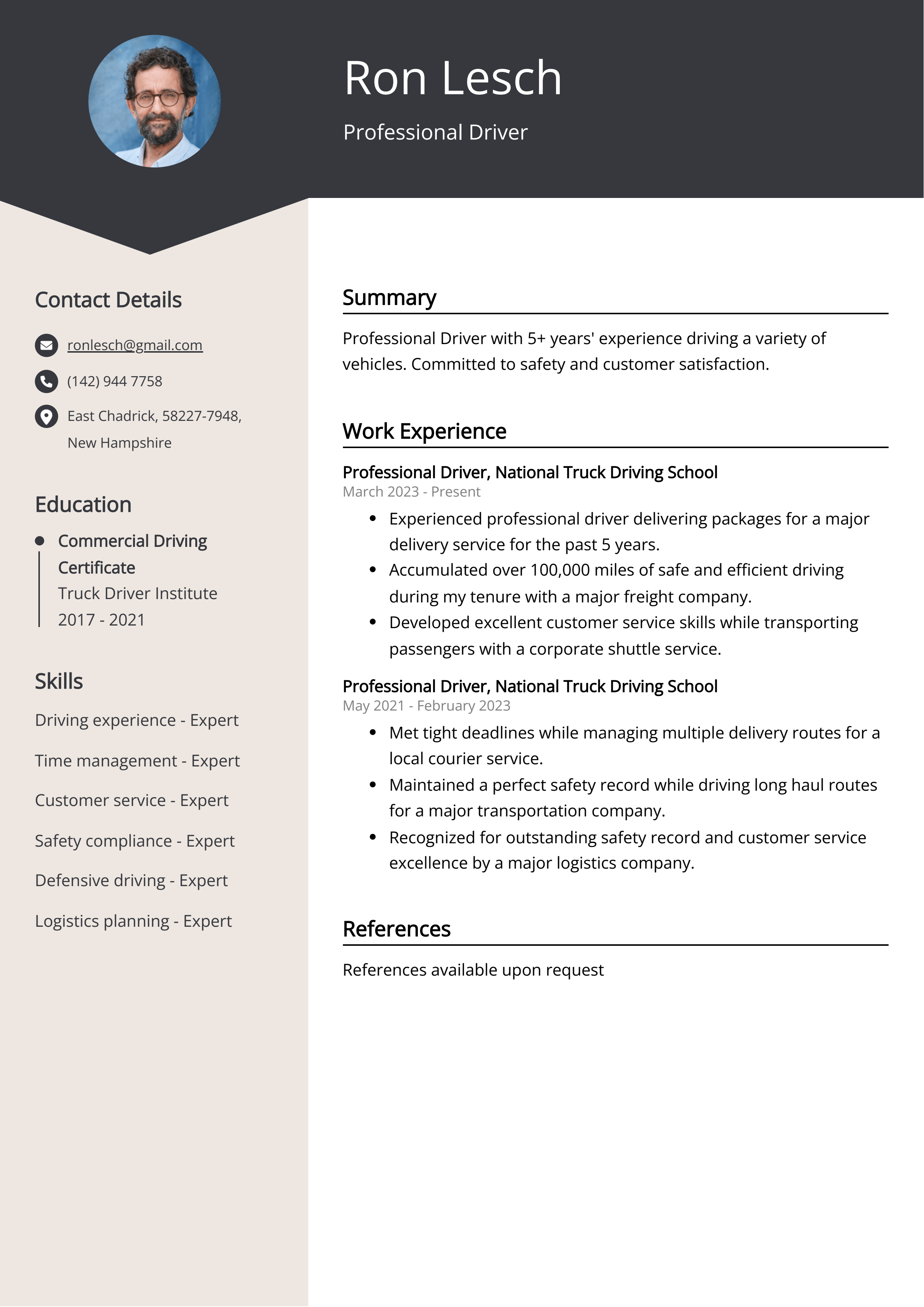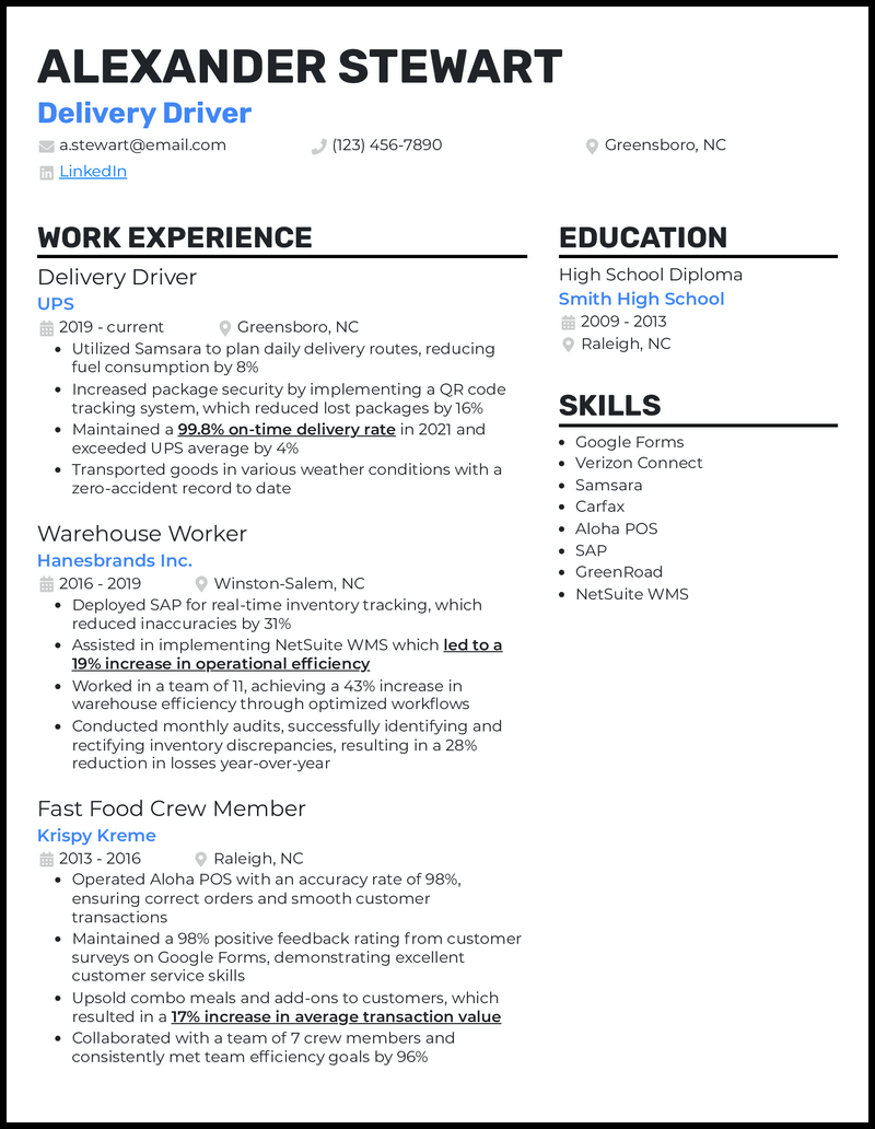 Berbagai Contoh Driver Resume Sample