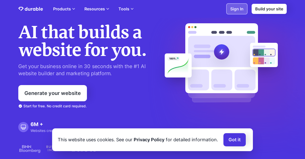 durable ai website builder generates entire business