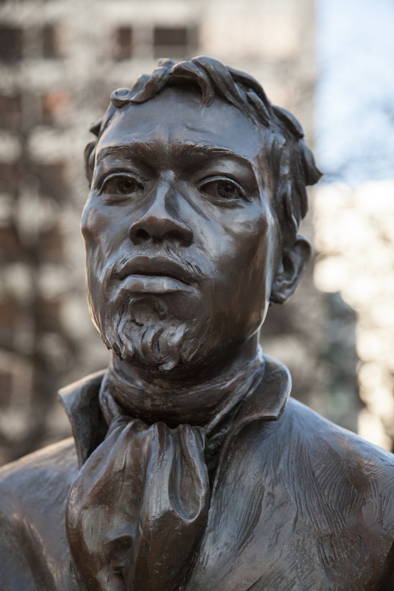 bronze statue jean baptiste pointe dusable chicago hit vandalism