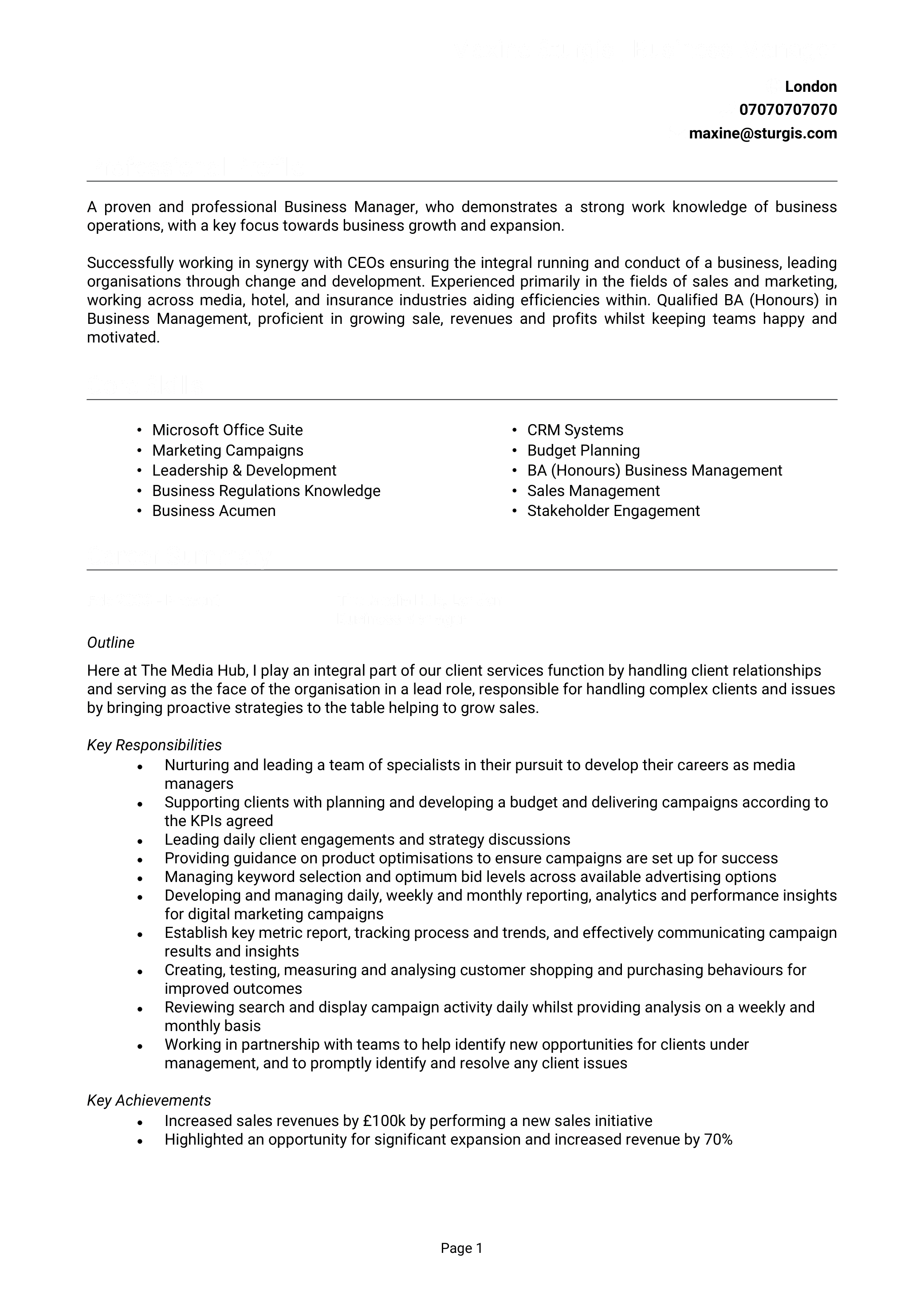 Berbagai Contoh Early Careers Cv Template