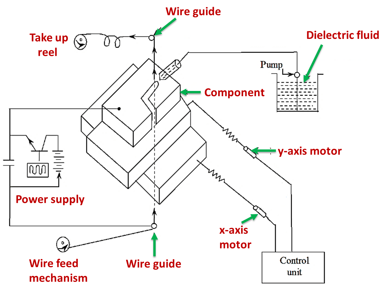 wire edm wire electric discharge machining process diagram
