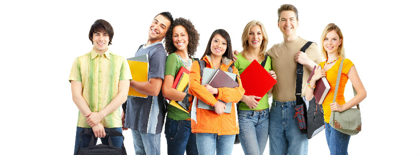 university students smiling portrait papers education
