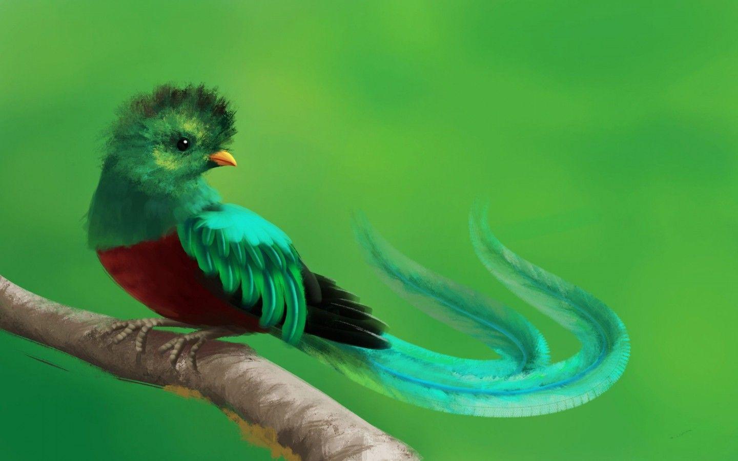 hand drawn quetzal bird colorful illustration quetzal sitting