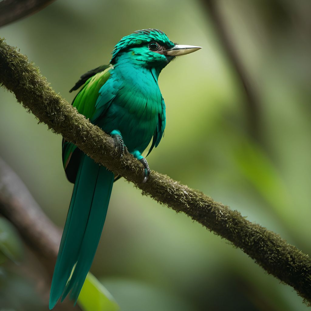 emerald green quetzal mossy branch ai scribbles