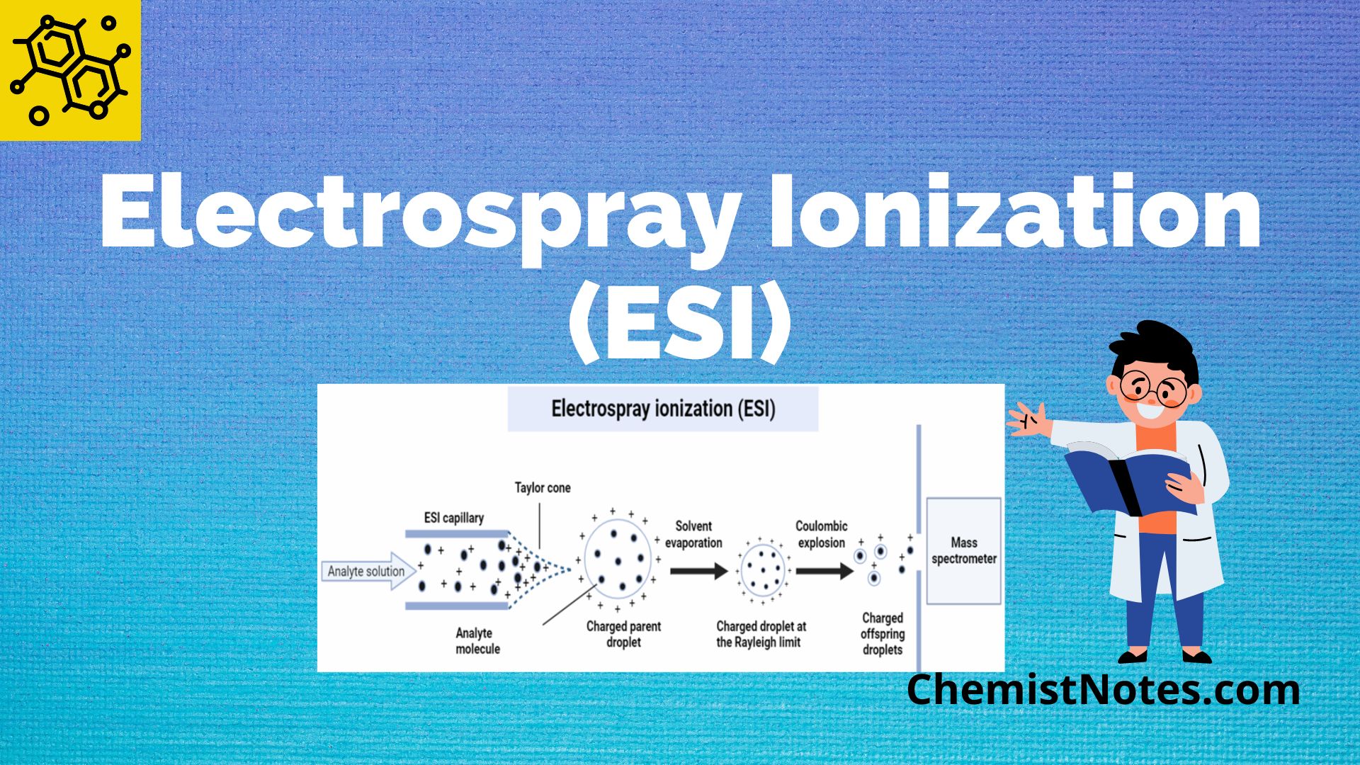 simplified description electrospray mechanism showing