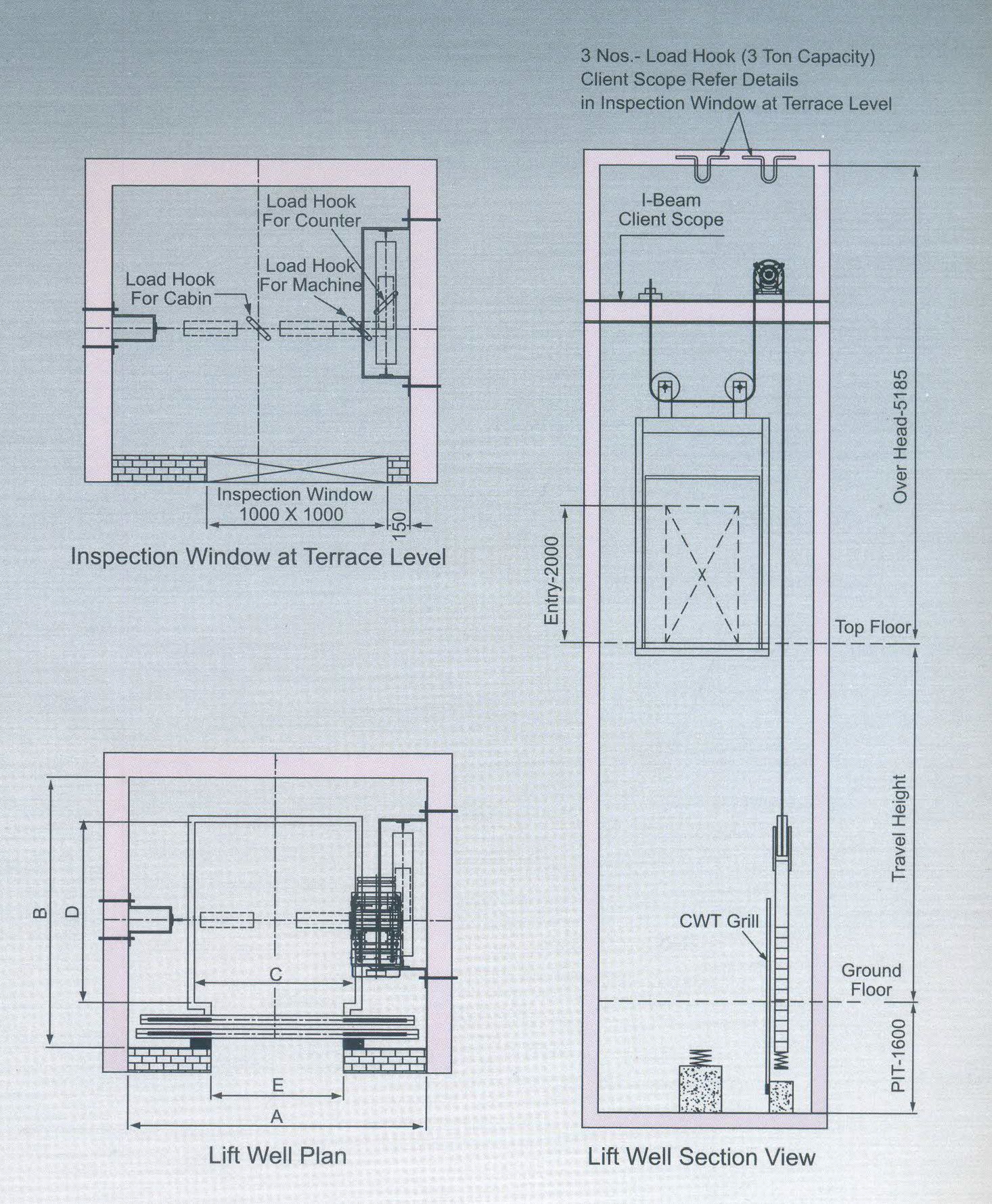 machine room elevator load capacity kilograms kg