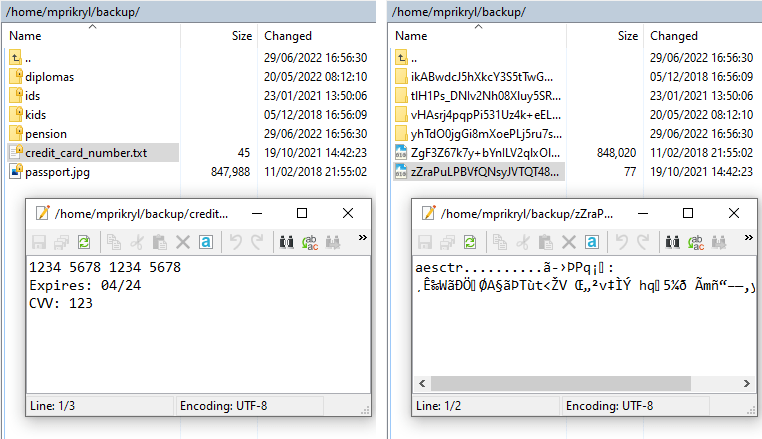 file encryption interface showing encrypted file content