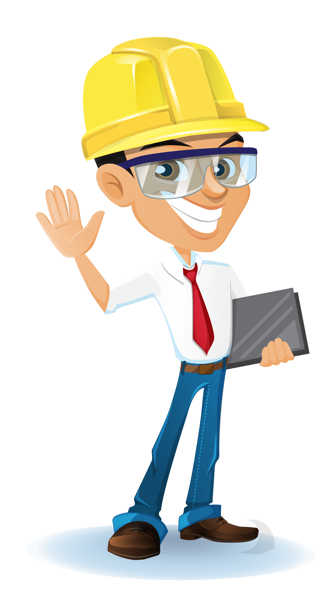 animated young engineer safety gear glasses hard hat