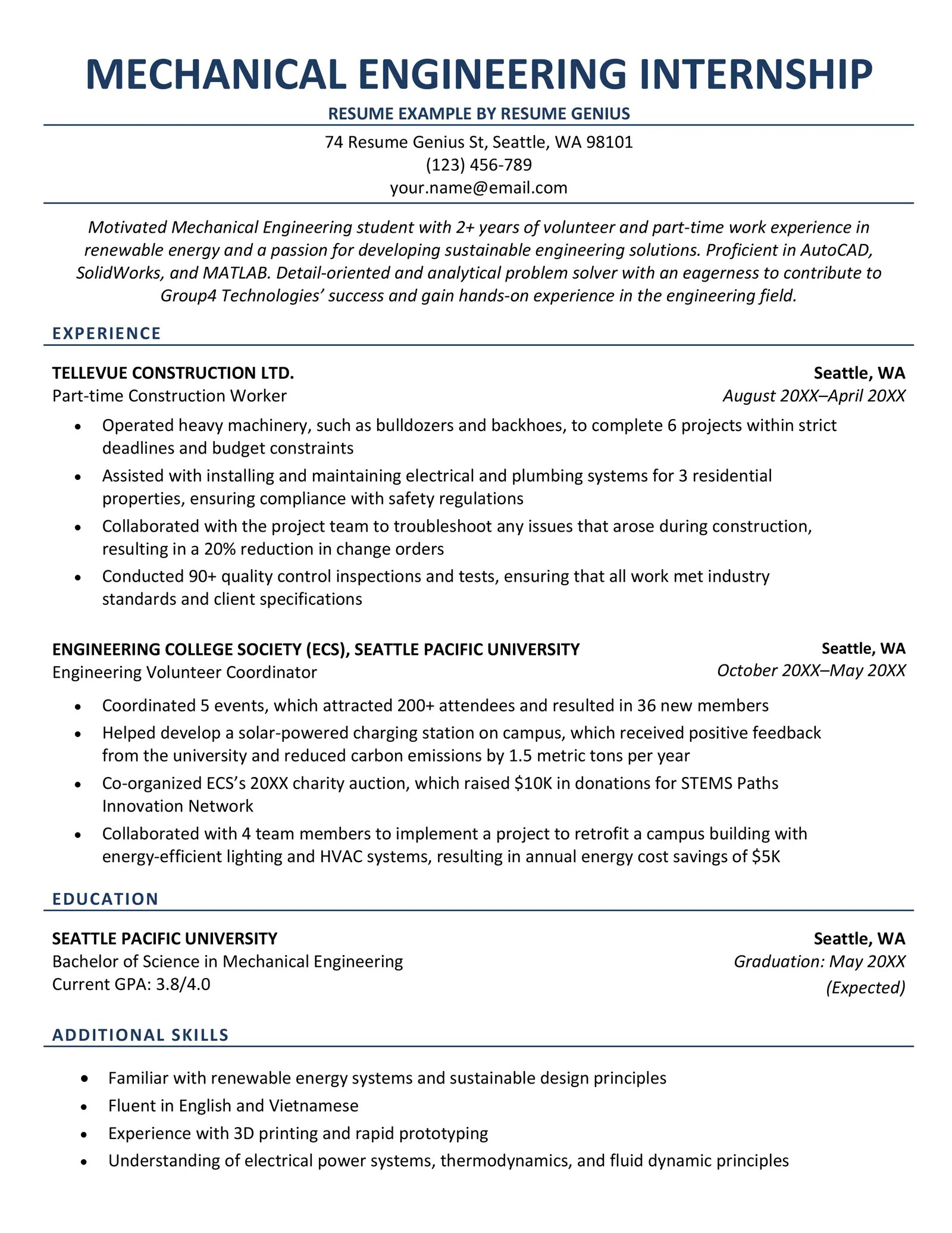 engineering work internship experience department engineering