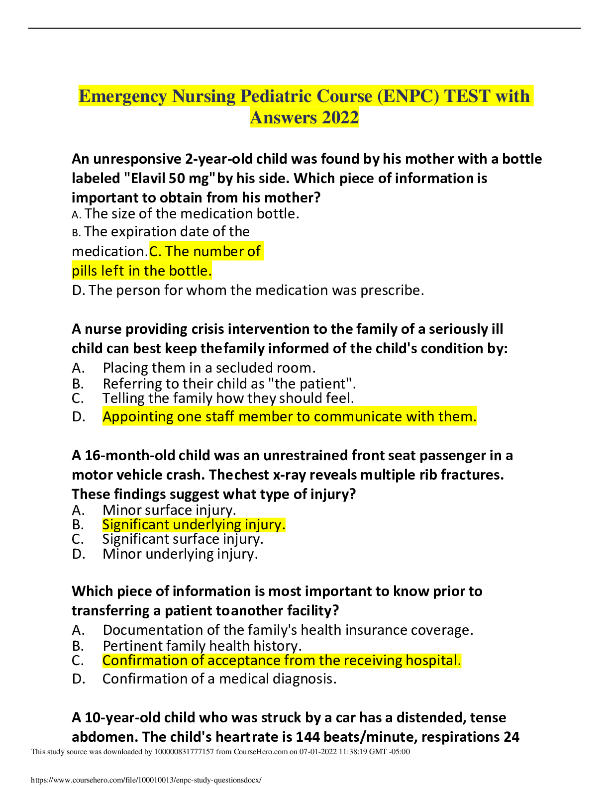 ultimate enpc questions answers exams medicine docsity