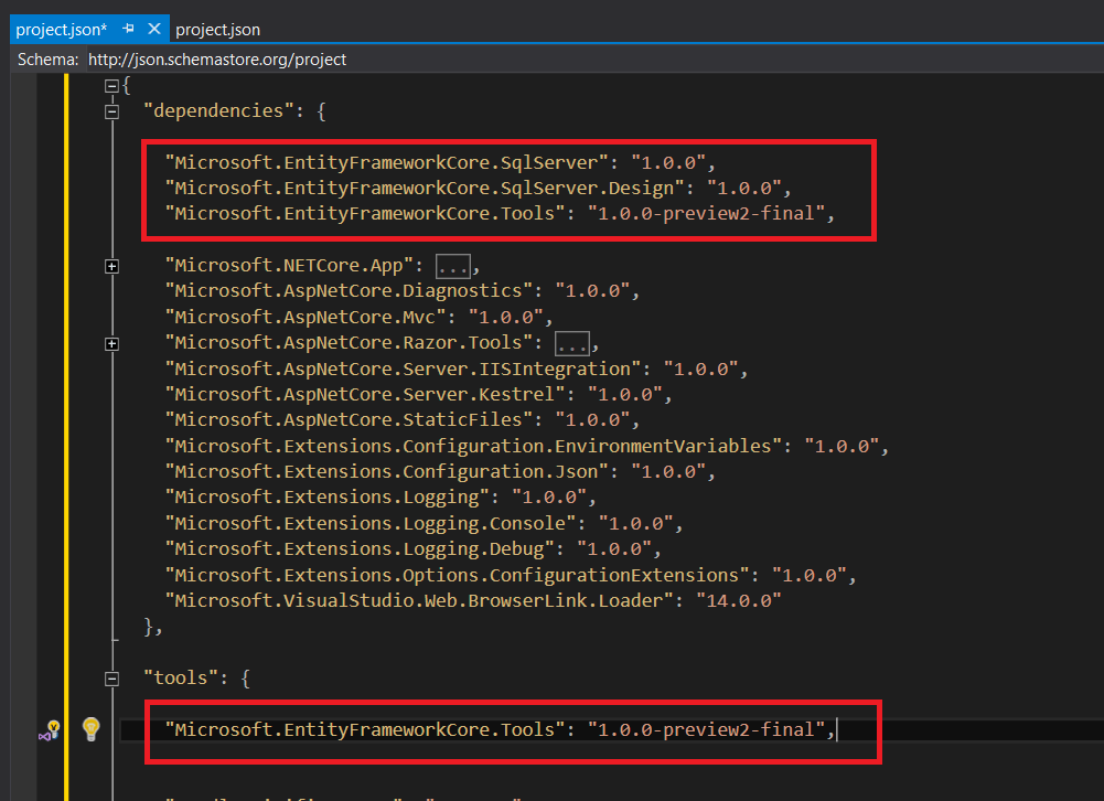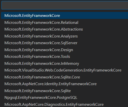 aspnet core install microsoftentityframeworkcore packages