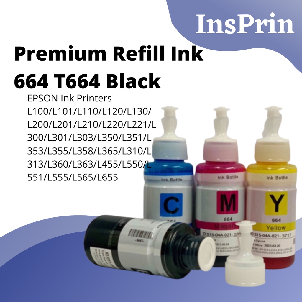 Tidak hanya Epson 664 Ink, anda juga bisa melihat gambar lain seperti Compatibility Chart, Color Palette, Magenta Dye, 3 Bots, Color Set, Printer, Black, Bottle, Refill, Compatible Printer, L555, and Cyan Color.