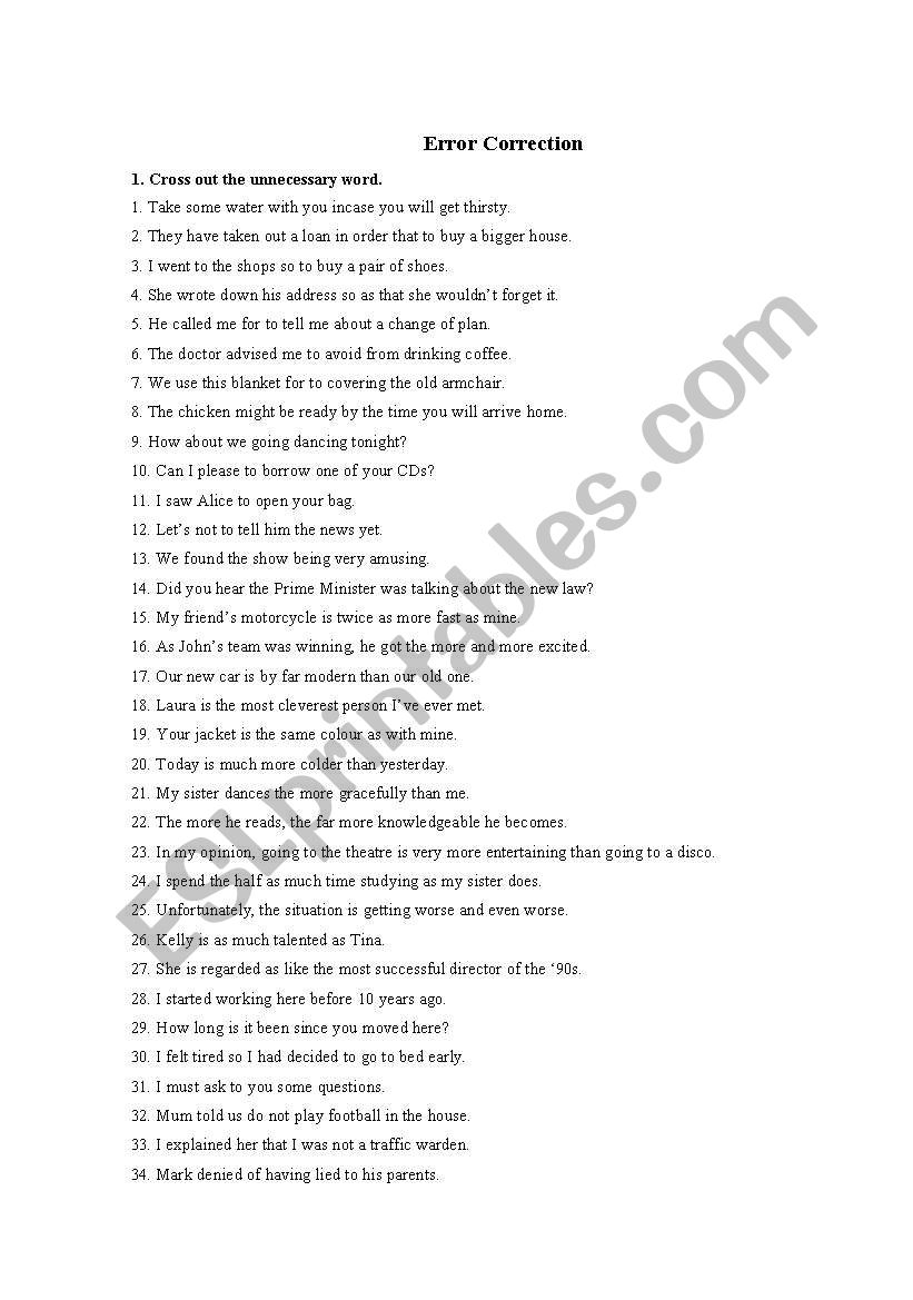 whats wrong error correction exercise esl worksheet brookee