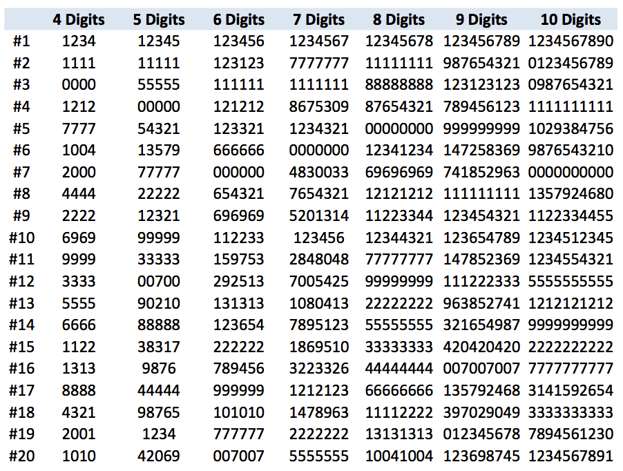 Berbagai Contoh Every Possible 4 Digit Code