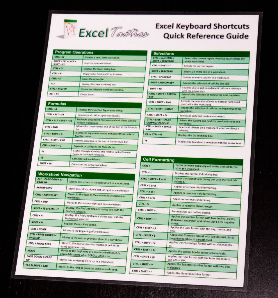 microsoft excel keyboard shortcuts quick reference guide
