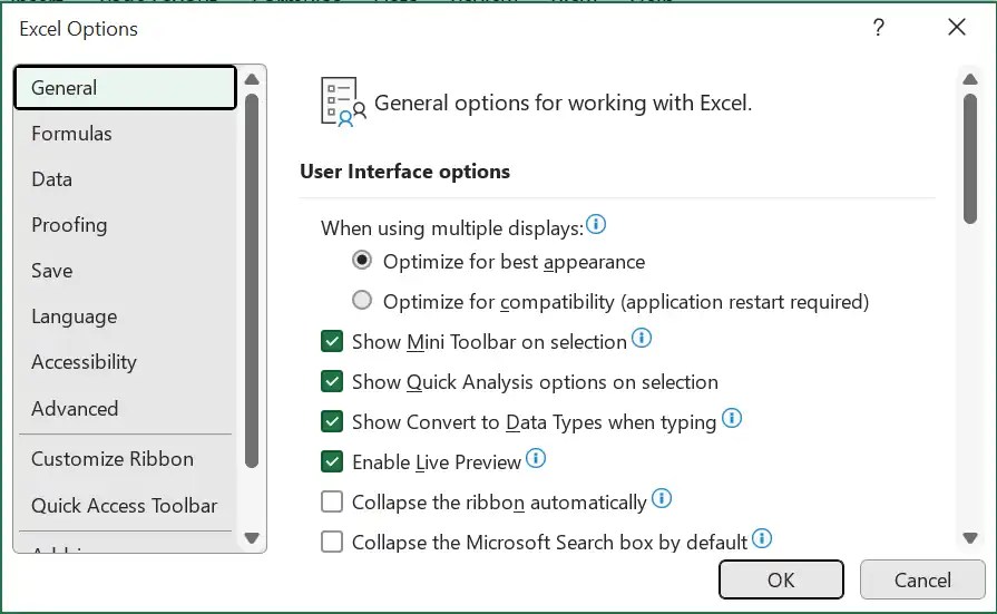 Berbagai Contoh Excel Options Window