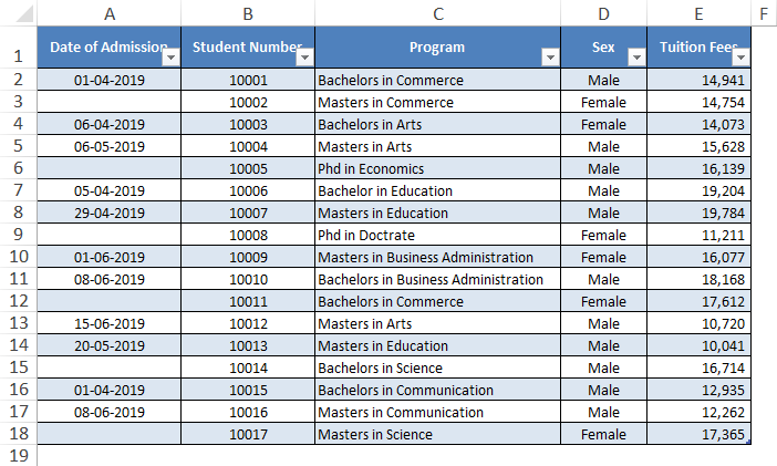 Berbagai Contoh Excel Table Display