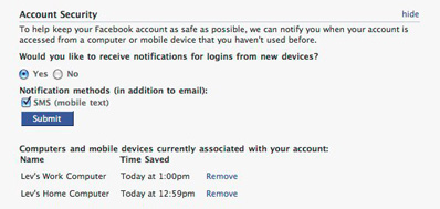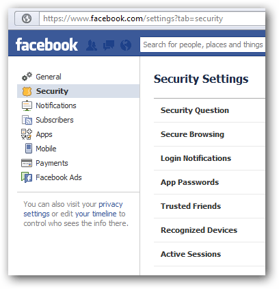 facebook security control browsers access profile