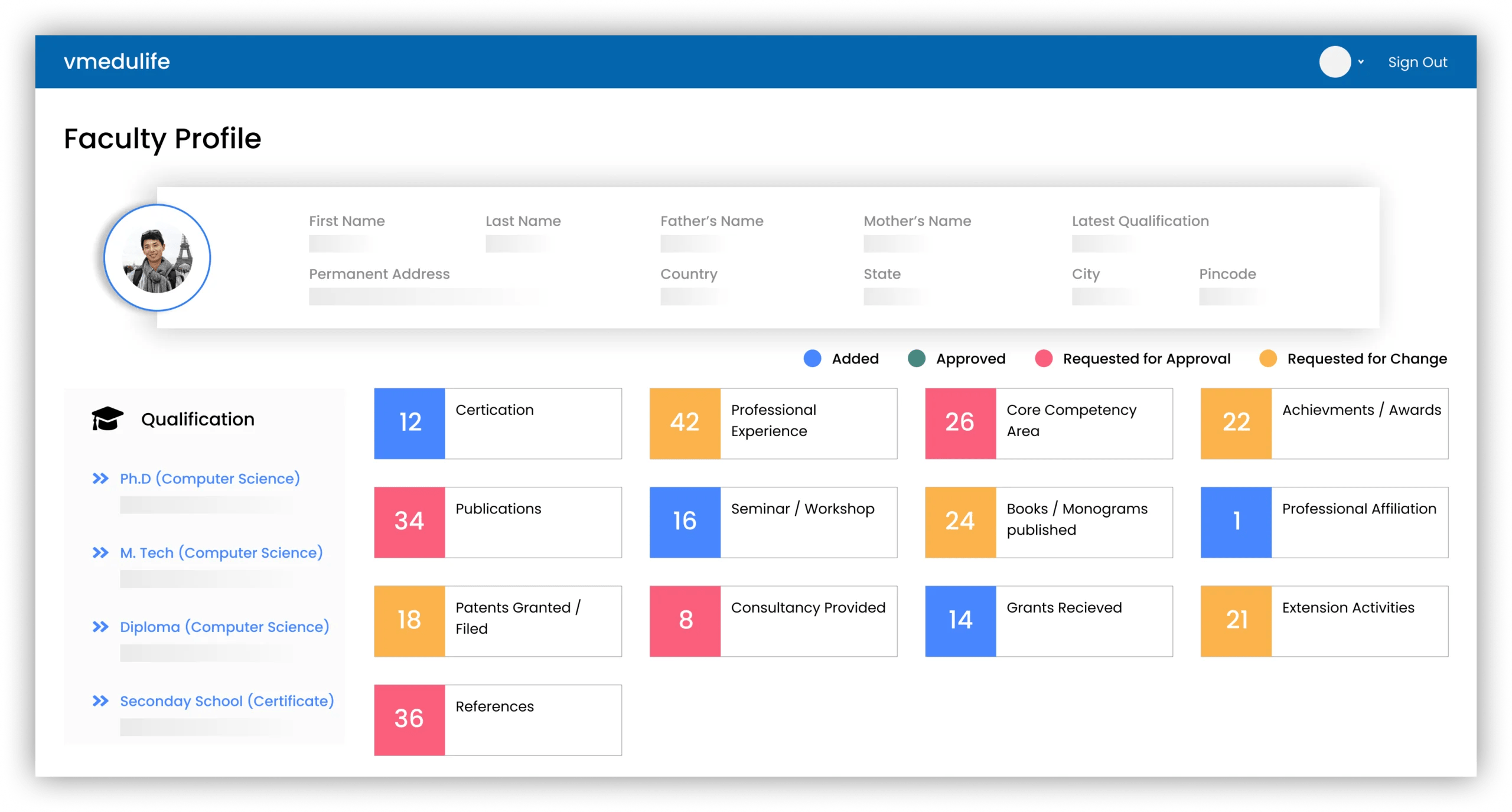 faculty profile tracking research teaching metrics