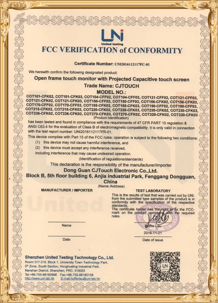 functional quality certification products touch monitors