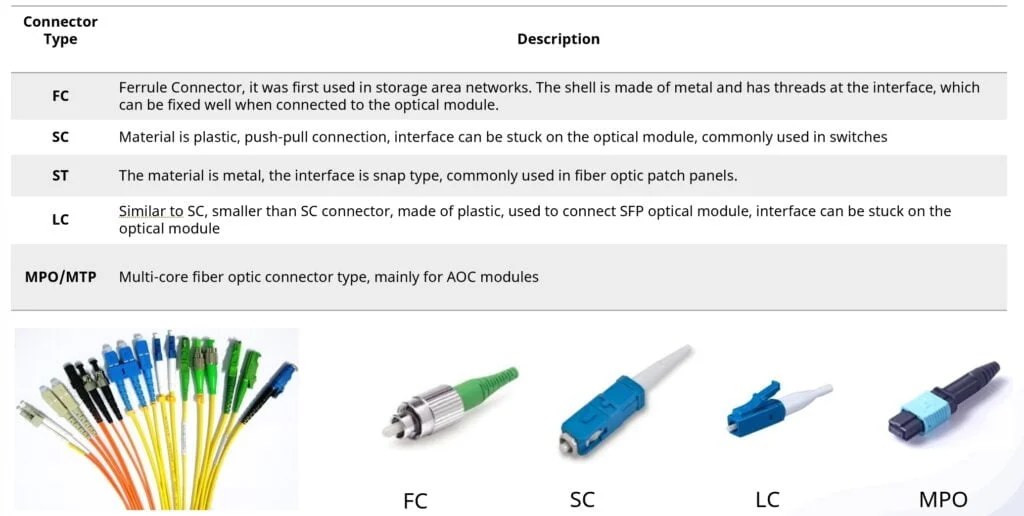 fiber optic connector types spcification sc lc fc din mpo