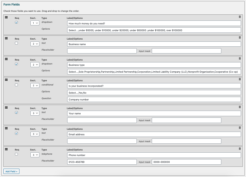Berbagai Contoh Field Settings