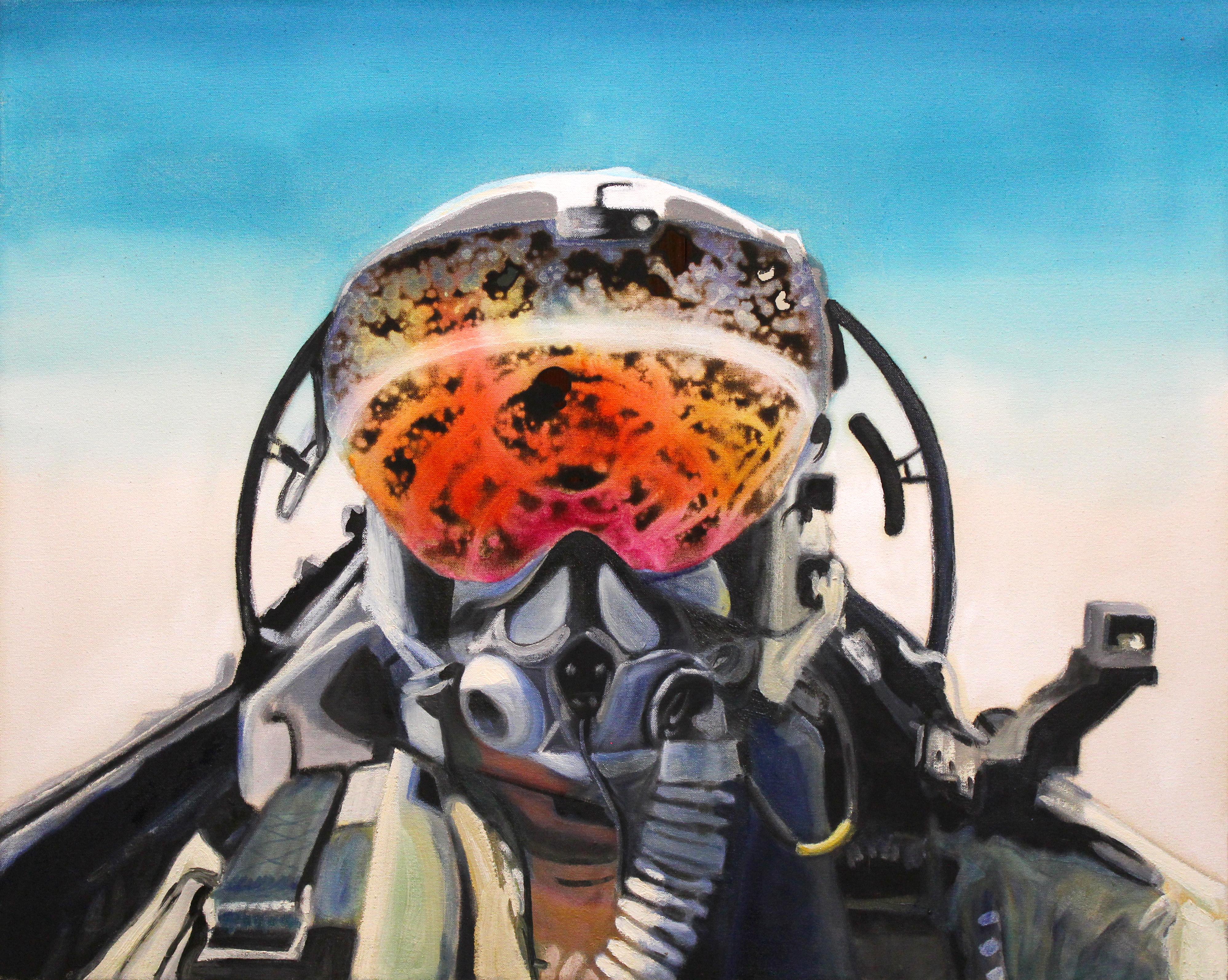 fighter pilot oil acrylic ink burned canvas rart