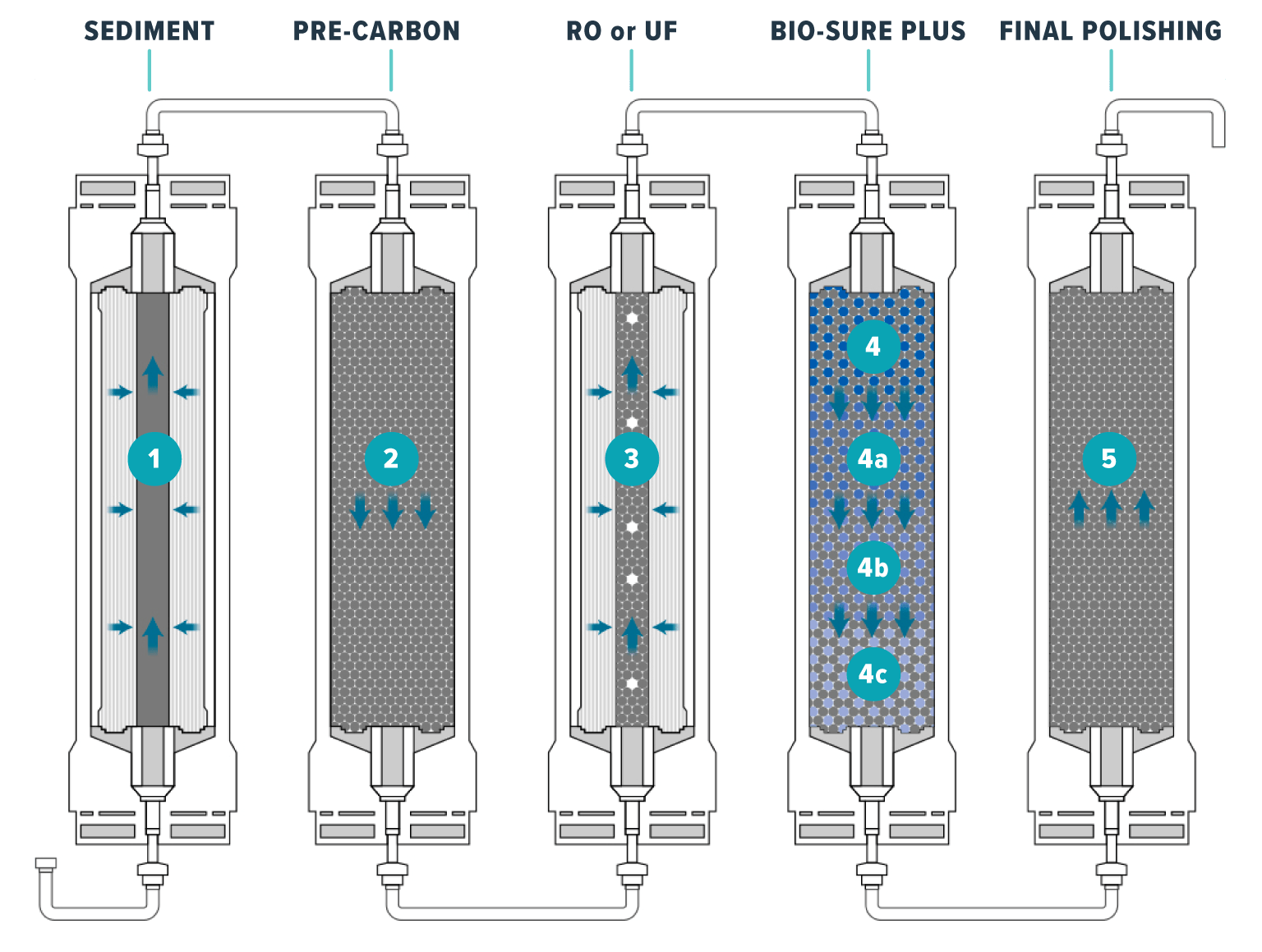 water purification system labeled filtration stages outline
