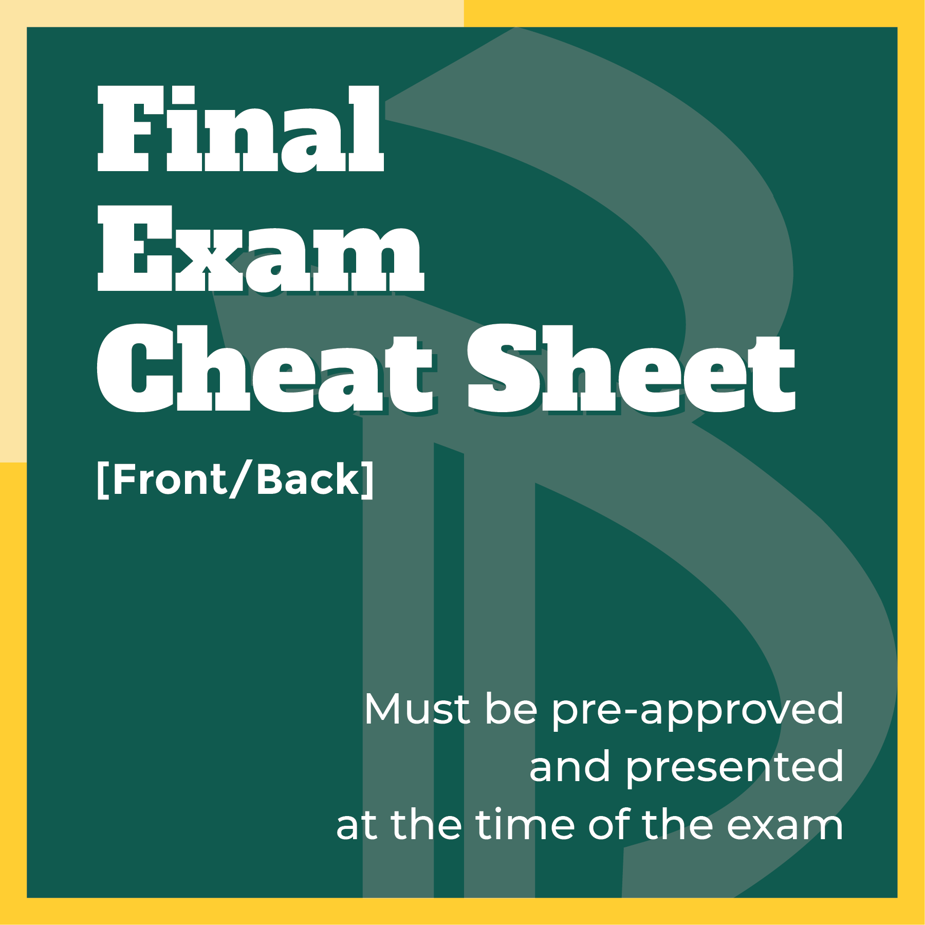 Berikut kami sertakan berbagai contoh gambar untuk Final Exam Cheat Sheet, silakan save gambar di bawah dengan klik tombol pesan, anda akan kami arahkan pemesanan via WA ke +6282245078486.