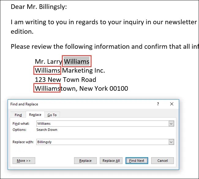 Berbagai Contoh Finding And Replacing Text